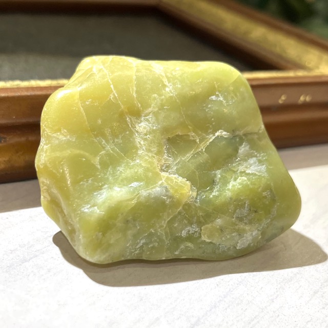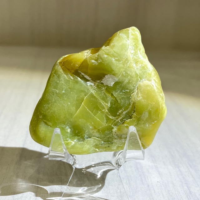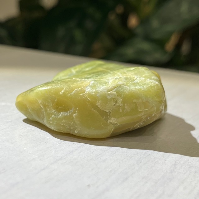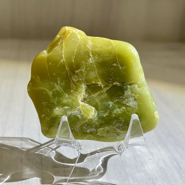 鮮やかなライムグリーン色をしたサーペンティン原石です。