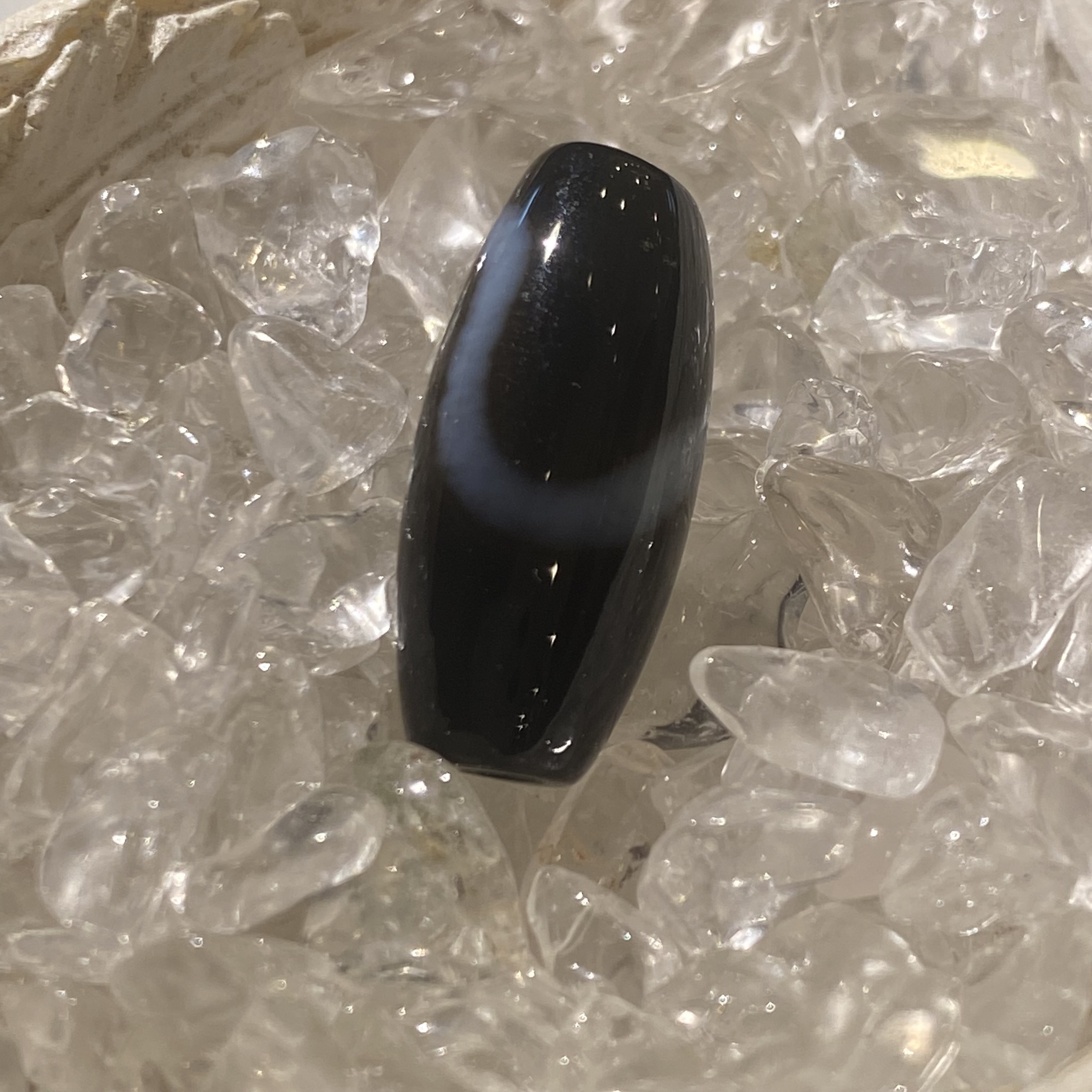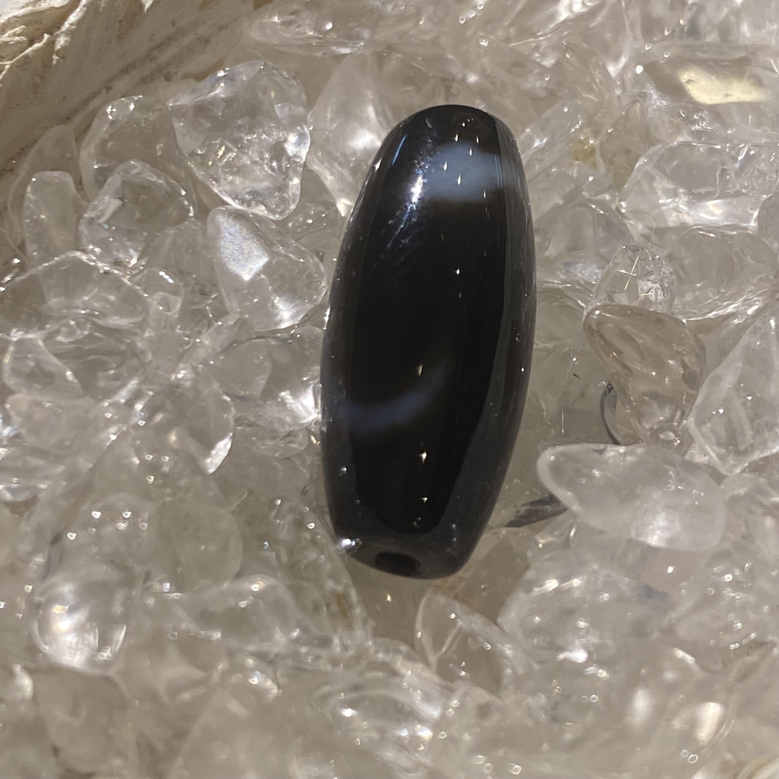 黒地天珠は模様のコントラストがはっきりしており、カッコイイイメージや重厚感を出して身に着けた方にもおすすめです。