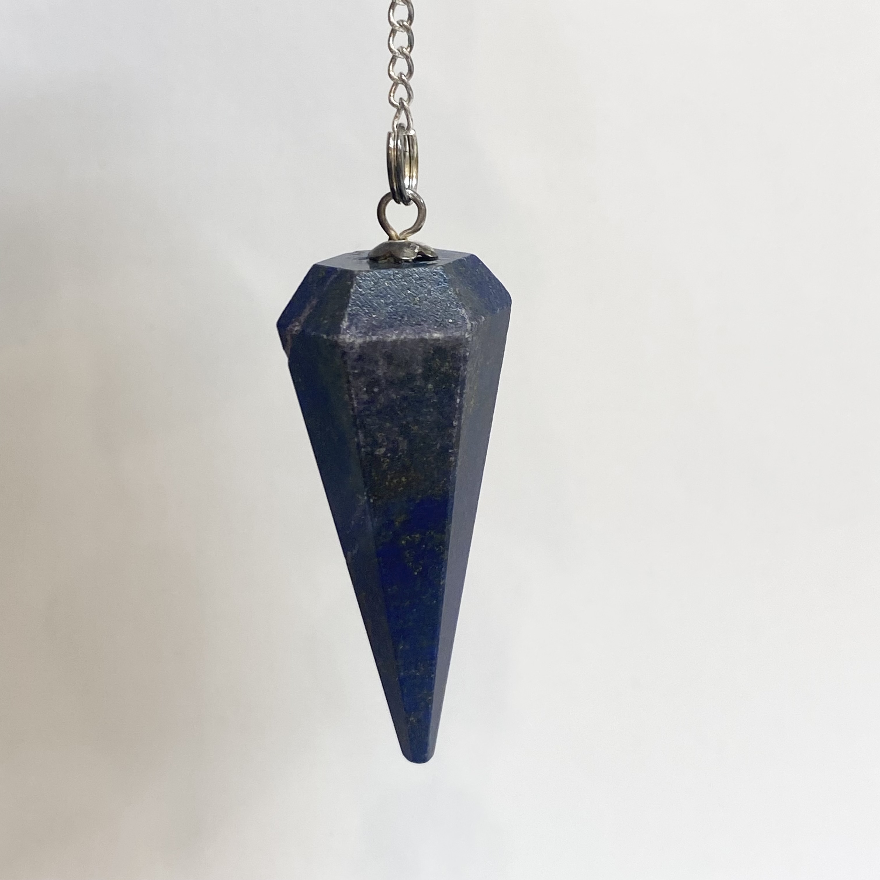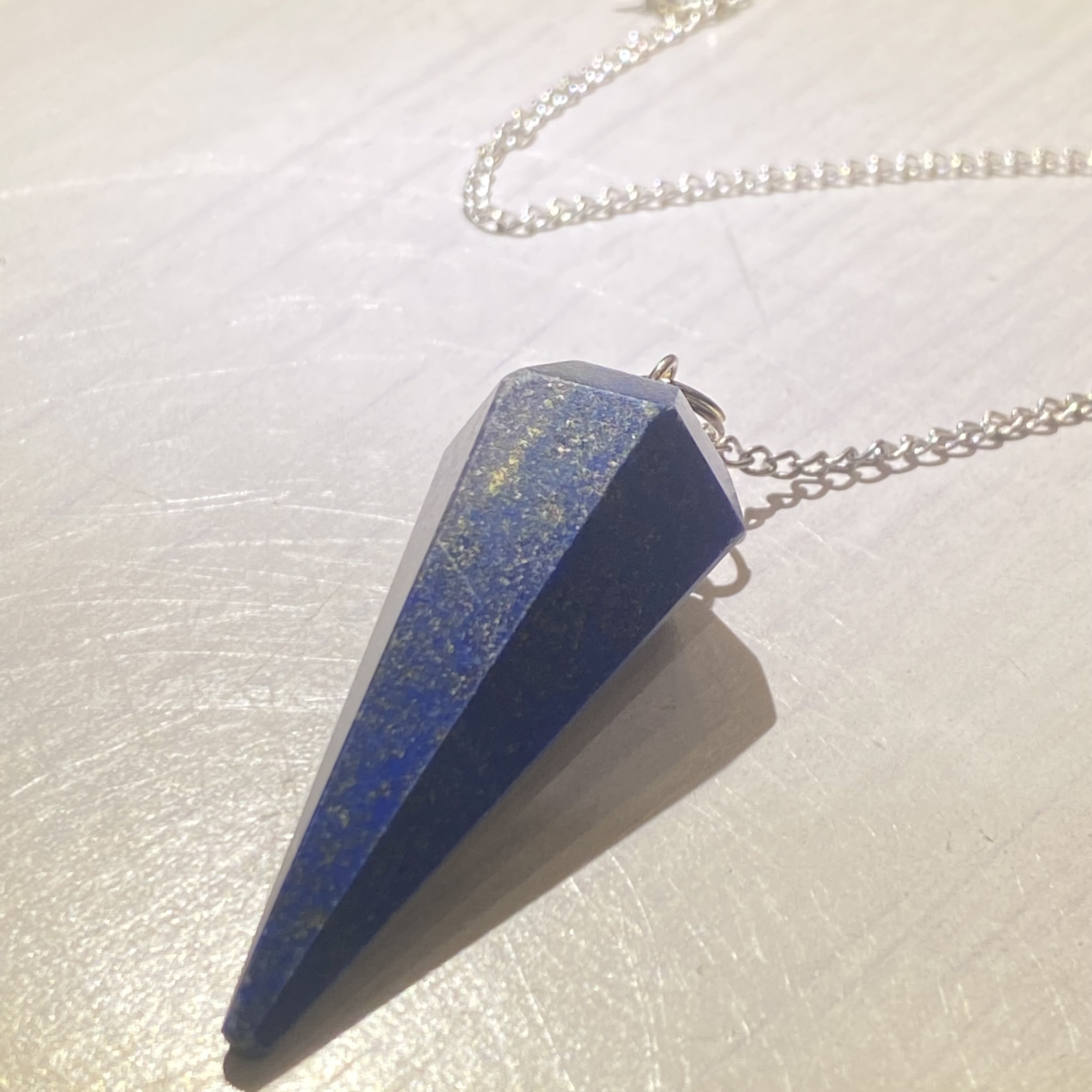 夜空のような藍色にゴールドのパイライトが映える人気のラピスラズリのペンデュラムです。