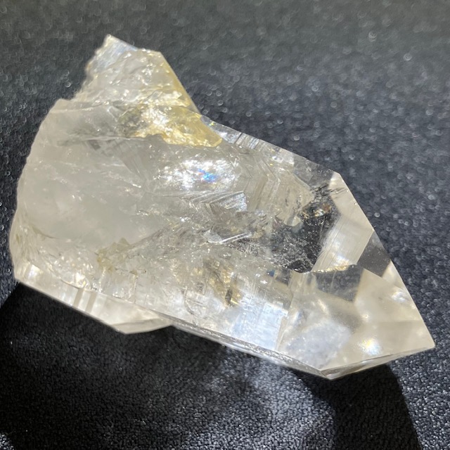 一見ガラスのような、自然界が生み出したものと思えないほどの抜群の透明度とギラッとした強い照りは、ケイ素の純度が高いことが原因といわれています。