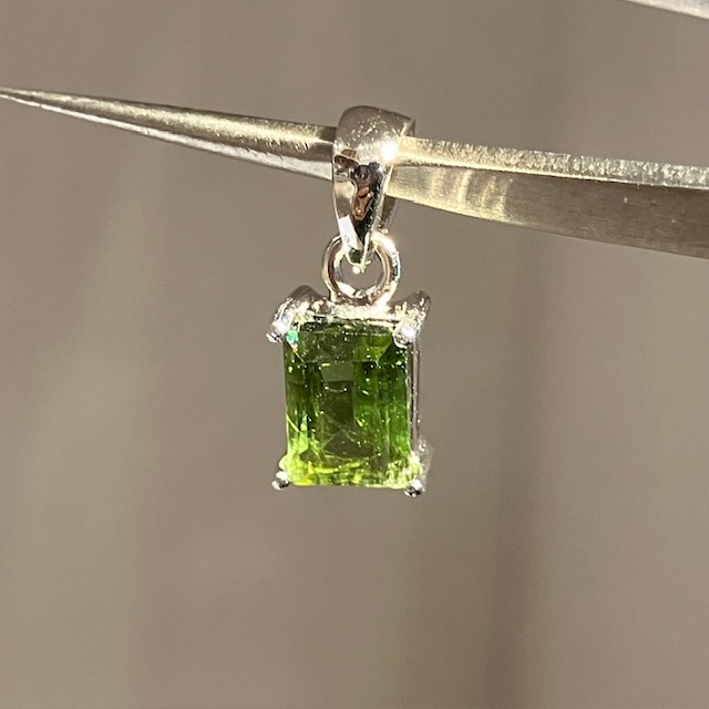 高品質なグリーントルマリンをスクエア状にカットを施した、身に付けやすいデザインのペンダントトップです。