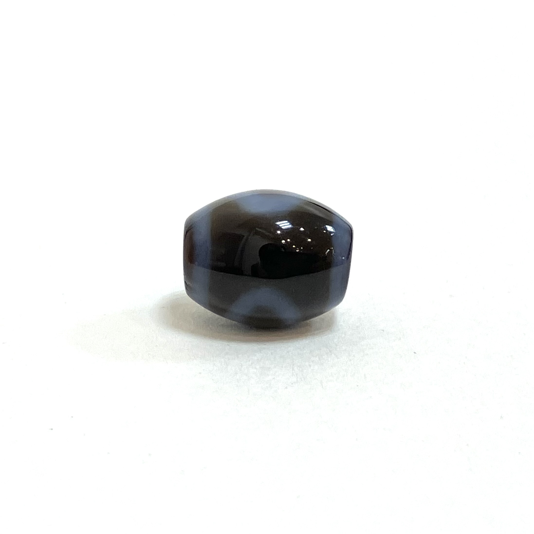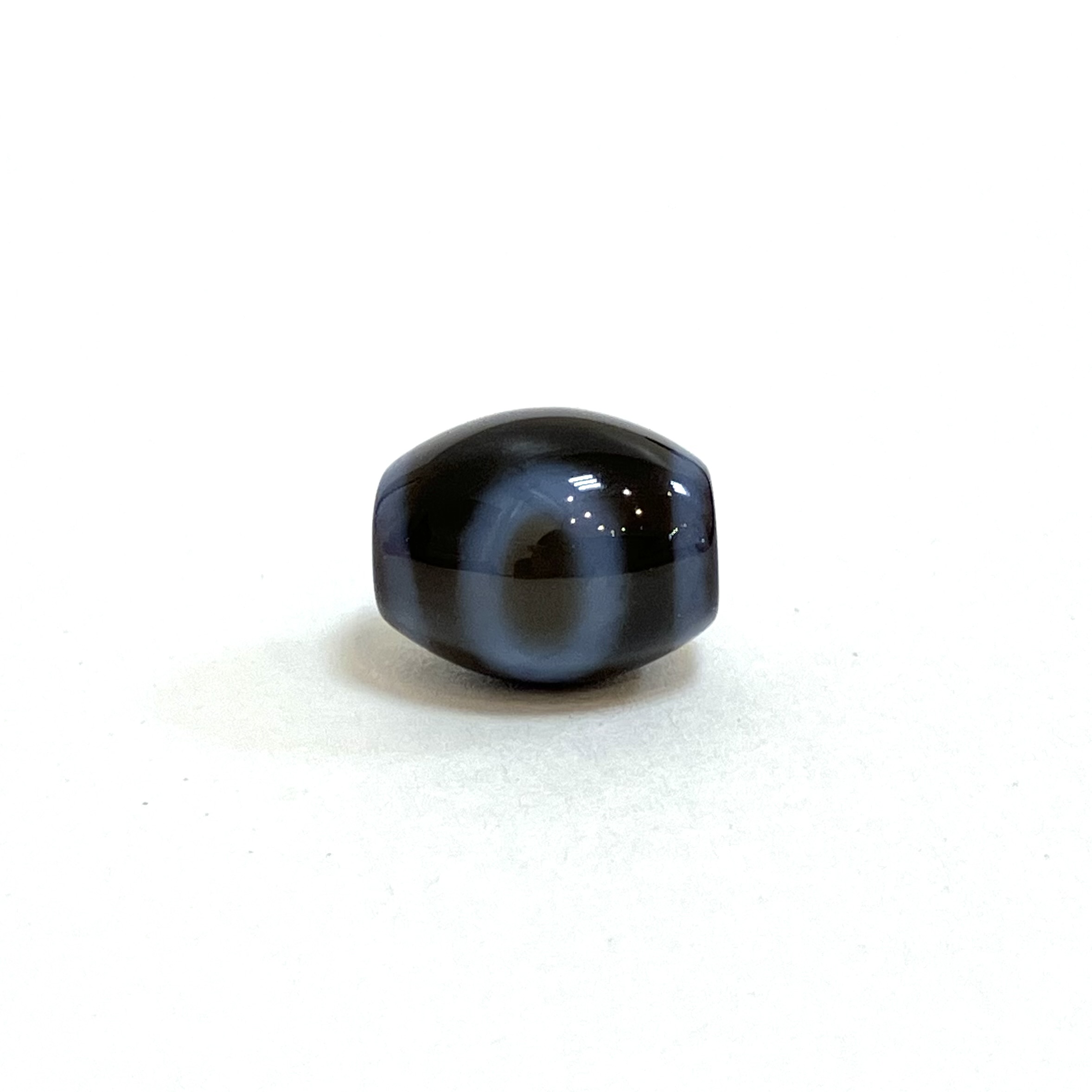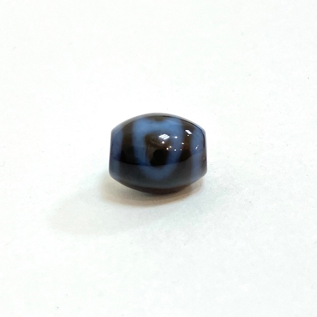 チベット西蔵から各地に伝わったことから、日本では「チベット天珠」と呼ばれており、メノウや玉髄に特殊な薬液をつけ円筒形に研磨加工し、表面に吉祥文様を焼き付けています。