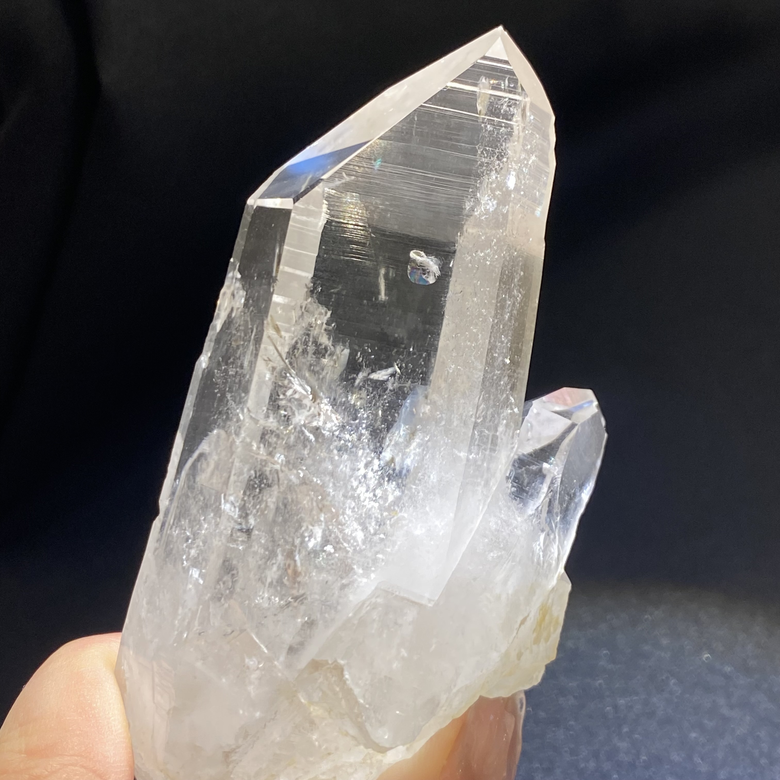 一見ガラスのような、自然界が生み出したものと思えないほどの抜群の透明度とギラッとした強い照りは、ケイ素の純度が高いことが原因といわれています。