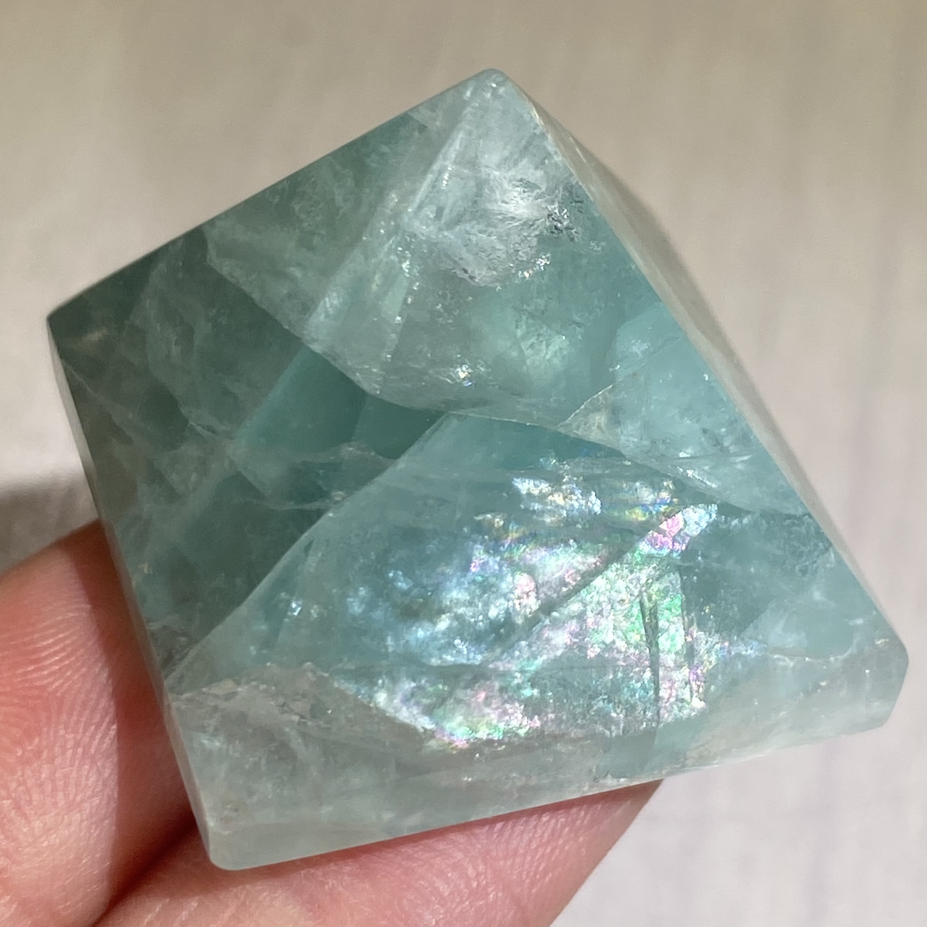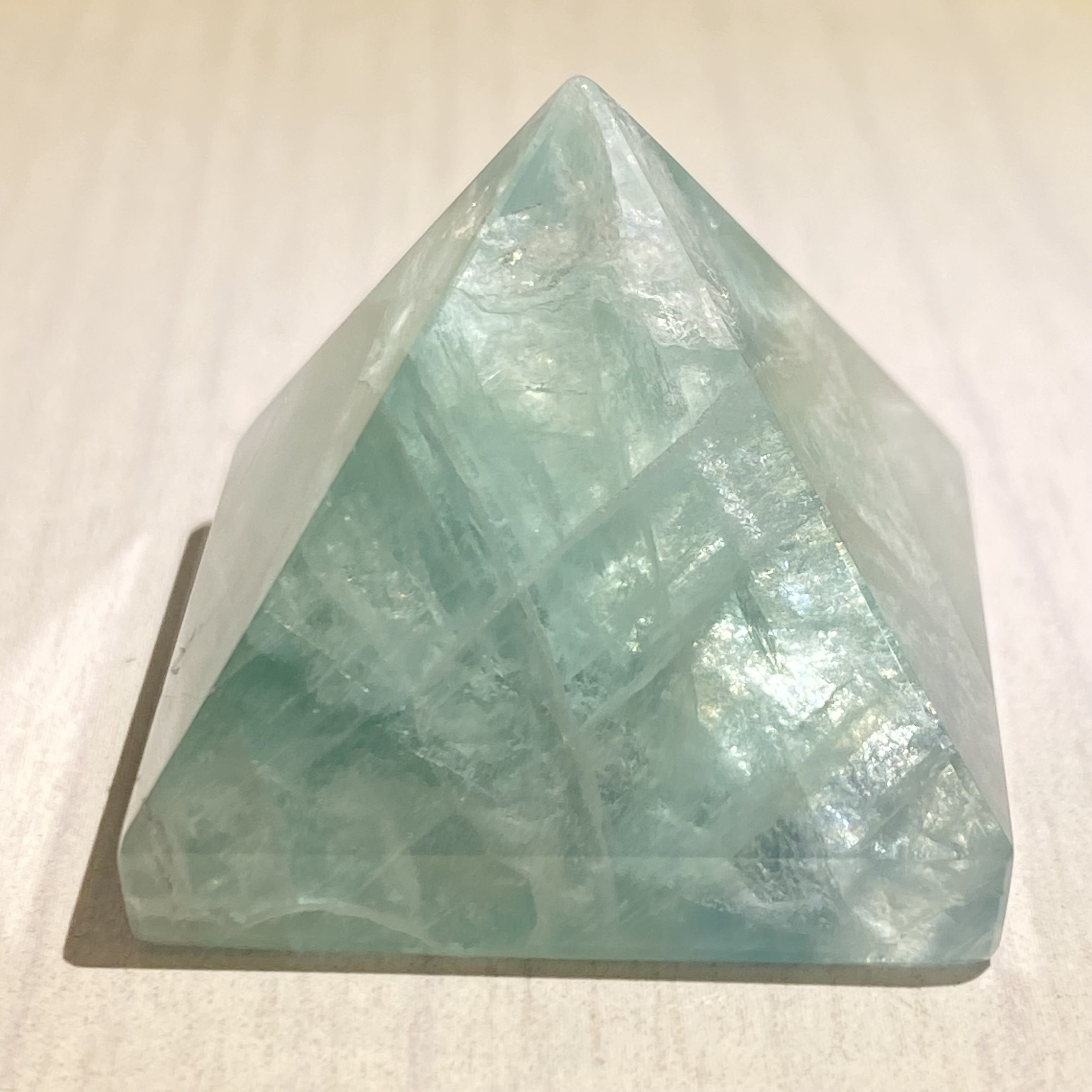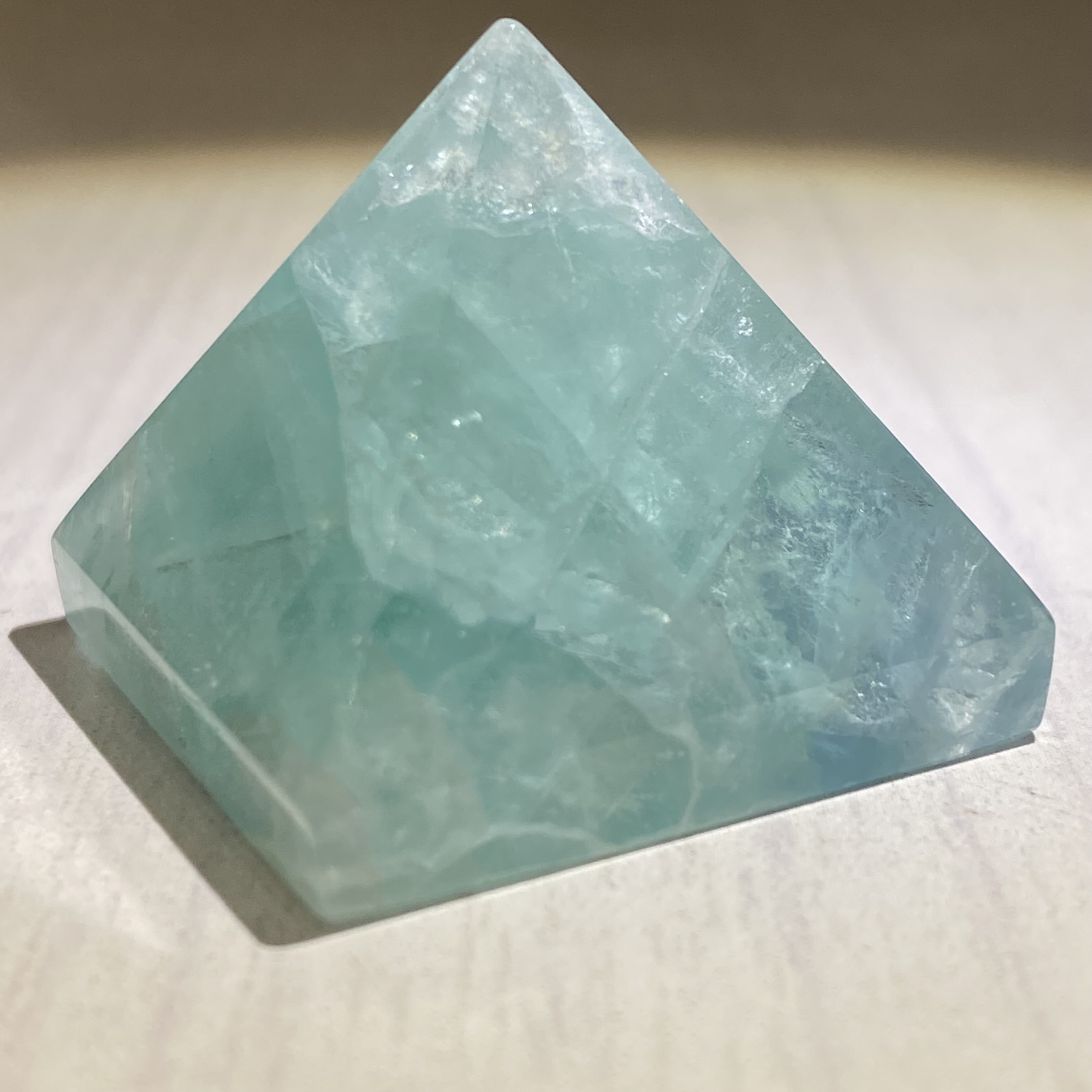 手乗りサイズの可愛らしいグリーンフローライトのミニピラミッドです。