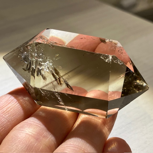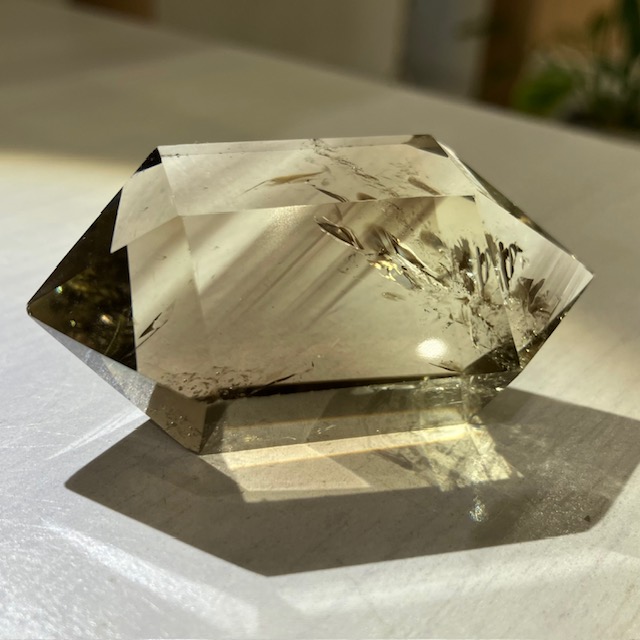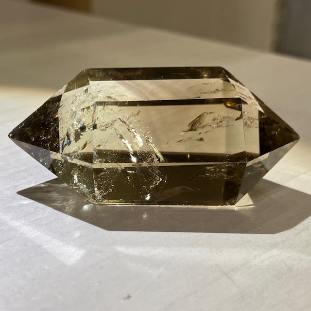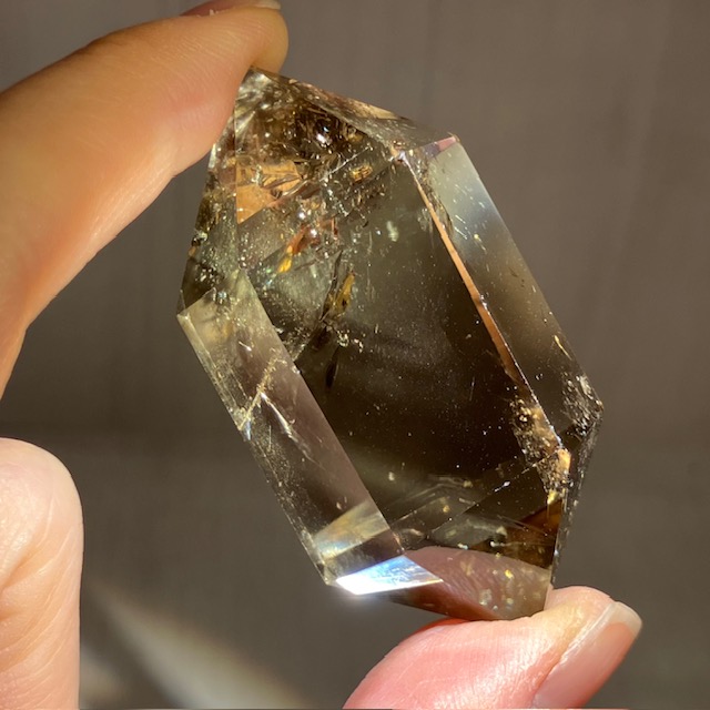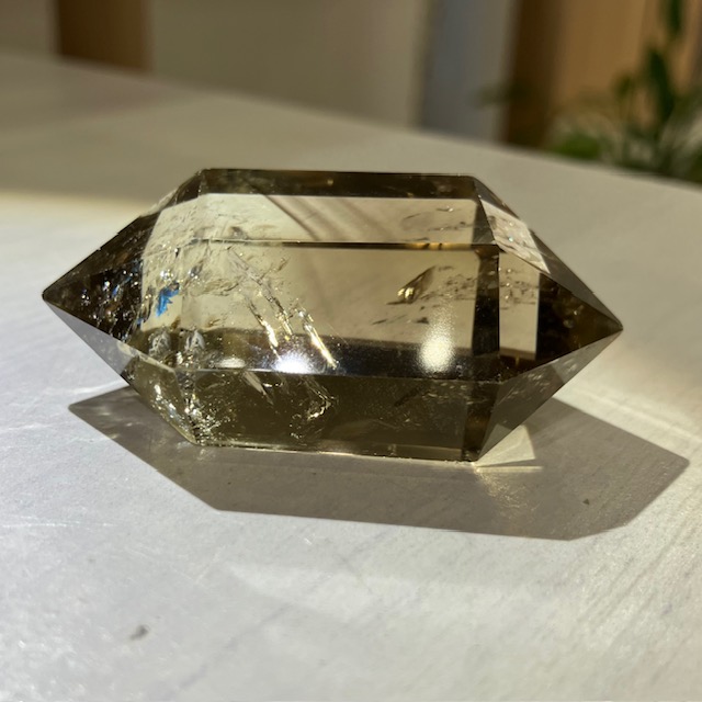 天然のスモーキークォーツとシトリンが混ざり合ったダブルポイントの原石です。
