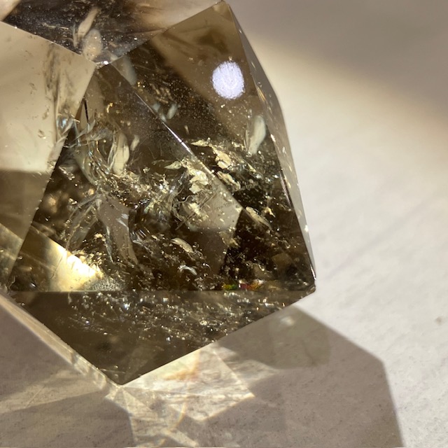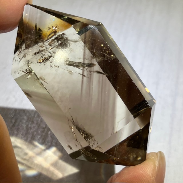 こちらの原石は内部に茶色く色づいた山形のファントムがしっかりと確認できます。