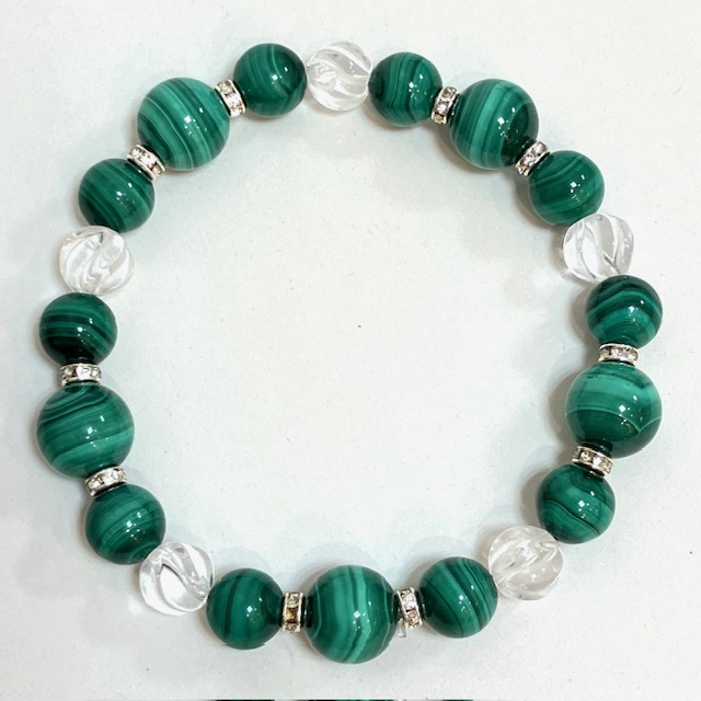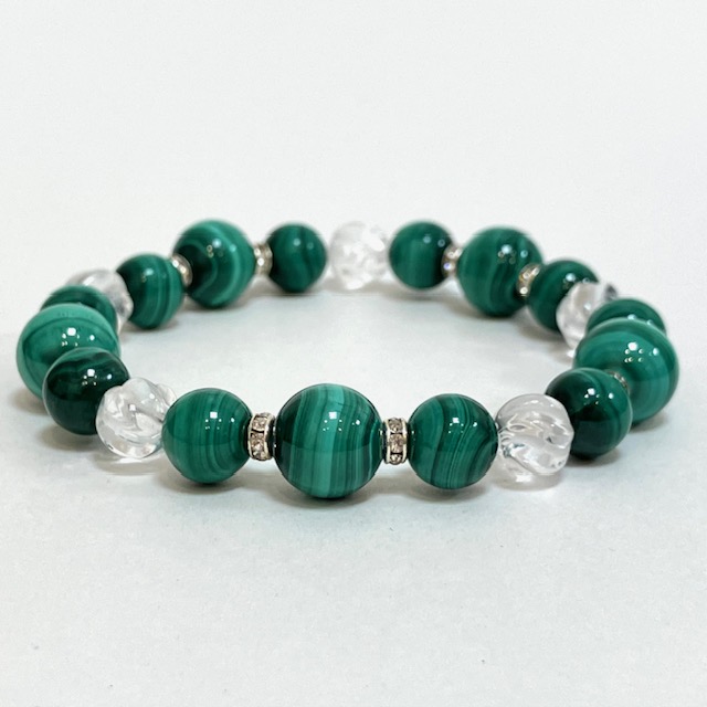 【天然石ブレスレット】マラカイト&水晶〈健康・厄除け〉