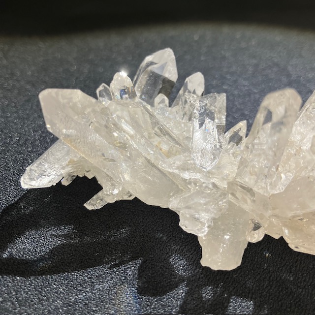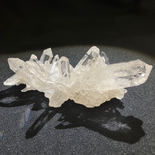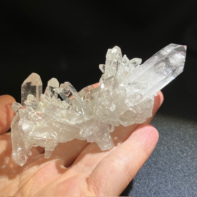 今回入荷の水晶クラスターは手のひらに乗るミニサイズながら、あらゆる方向に向かって自由に育った結晶の煌めきが美しい1石です。