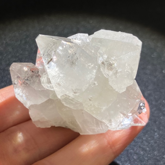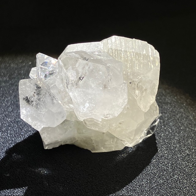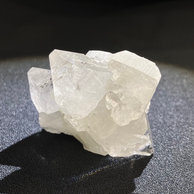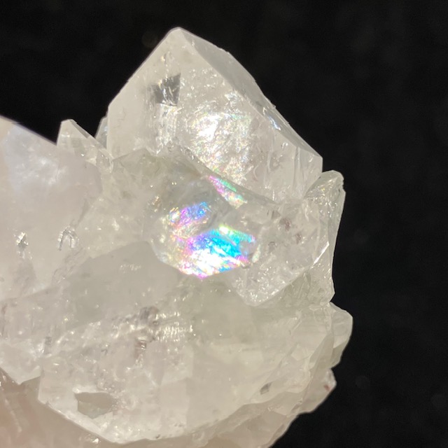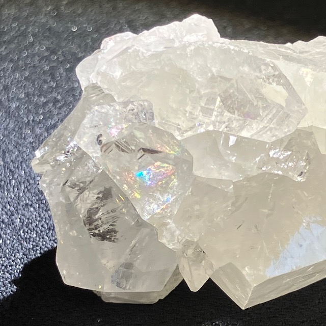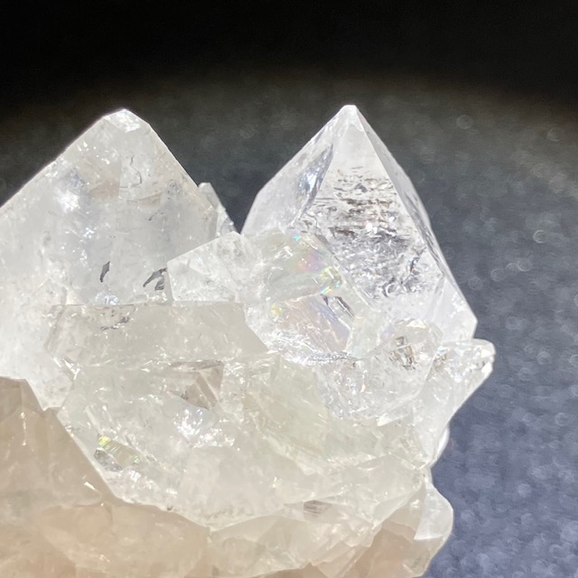 一見、水晶と似ていますが六角の形状に成長する水晶に対し、アポフィライトは四角形に成長していく性質を持っています。
