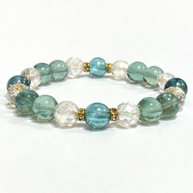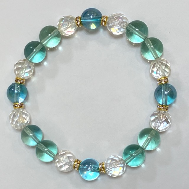 【天然石ブレスレット】アクアオーラ・レインボーオーラ・グリーンフローライト【スキルアップ・人間関係】
