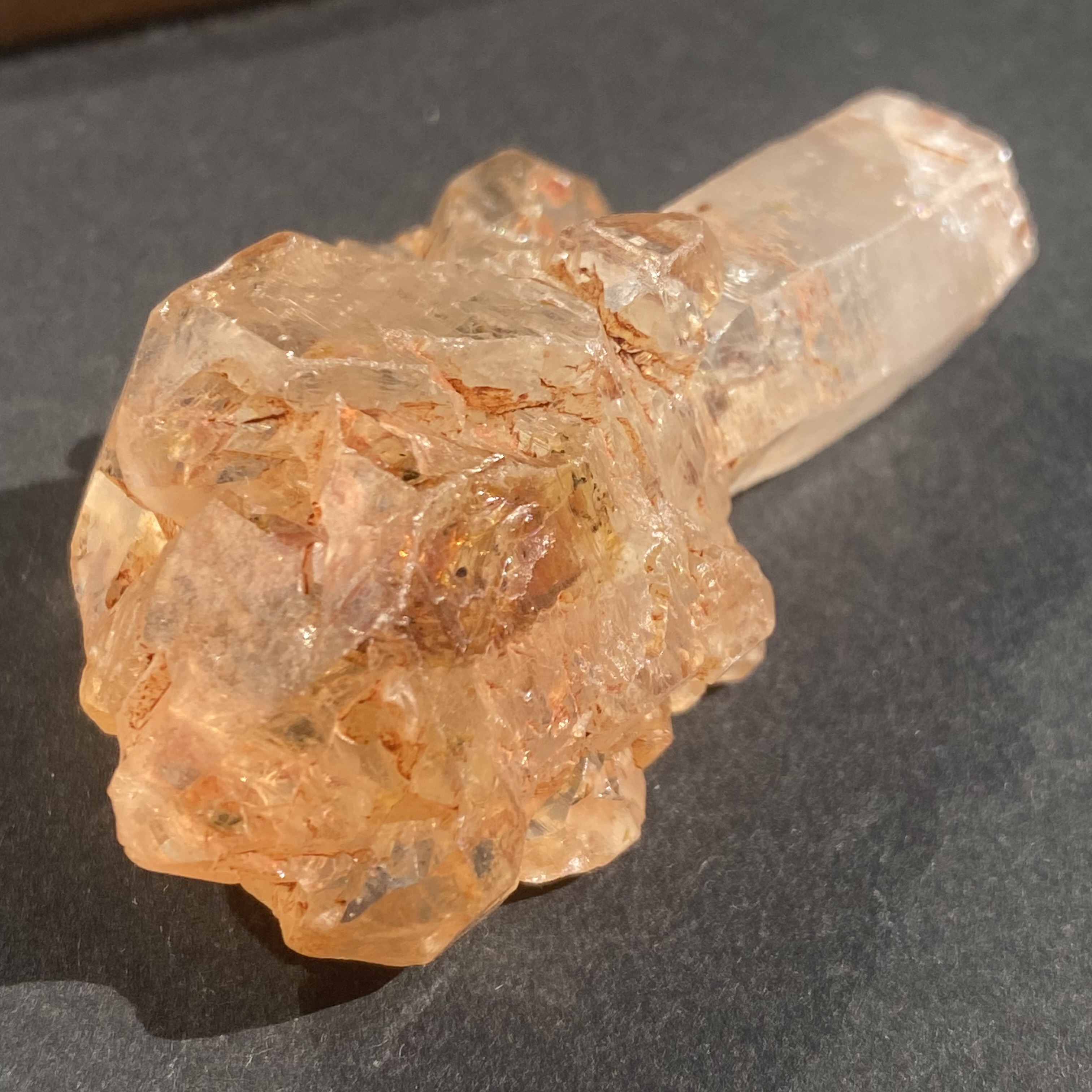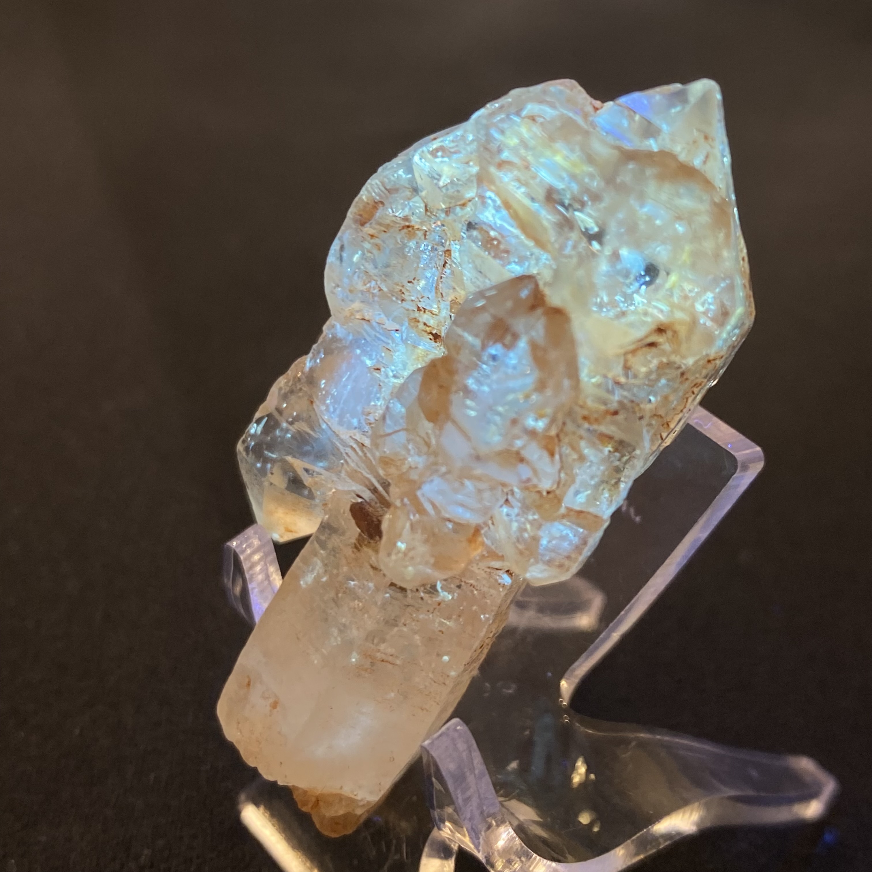 エレスチャル水晶が長い年月をかけて成長する中で、エレスチャルは短期間で沢山の結晶化が起こり生まれ、特殊な成長過程により内側に向かって成長するという、通常の水晶とは異なる性質を持っています。