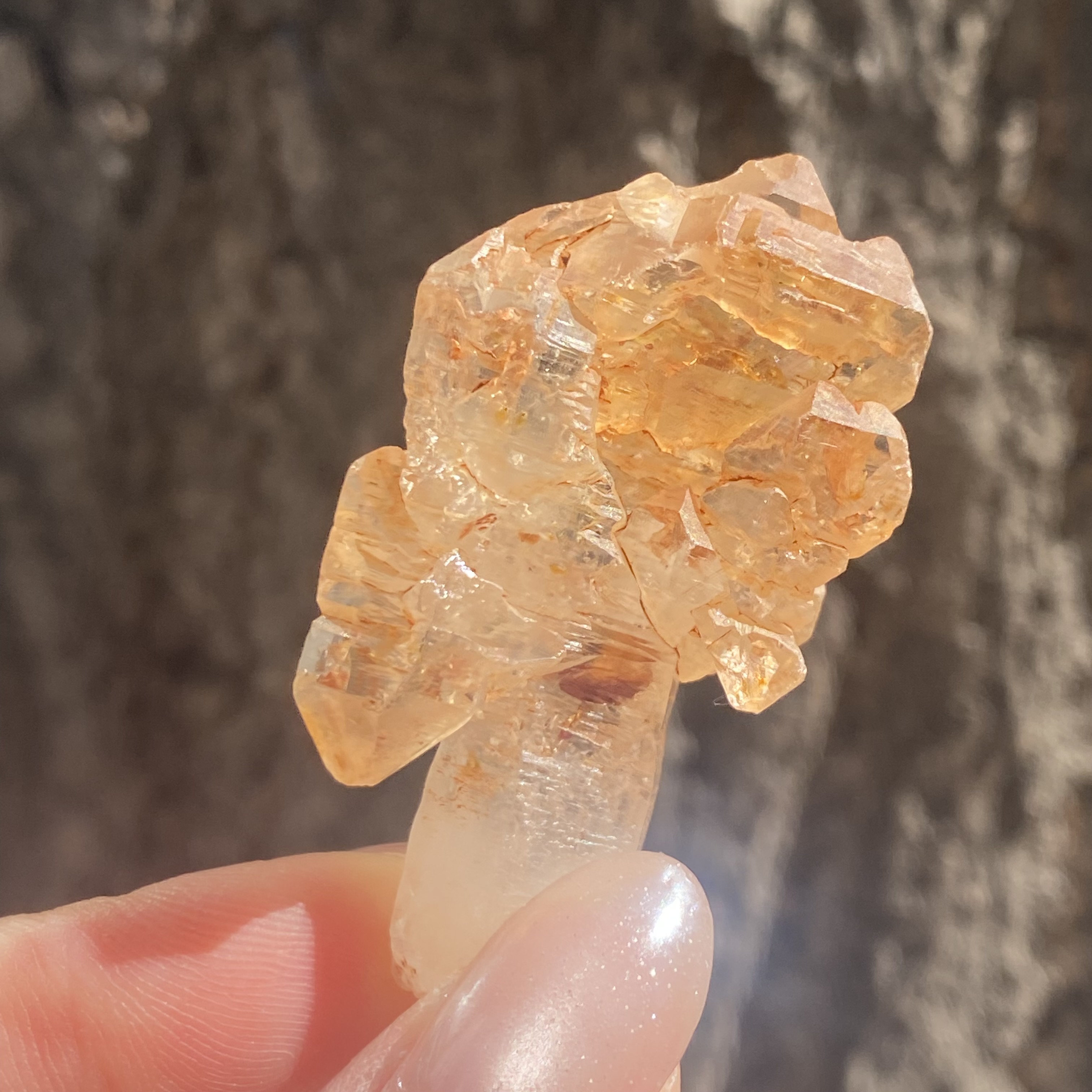 結晶が重なったようにごつごつとした段差状をしているのが特徴で、この見た目から骸骨水晶という和名を持っています。