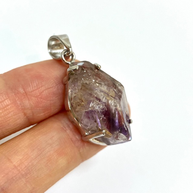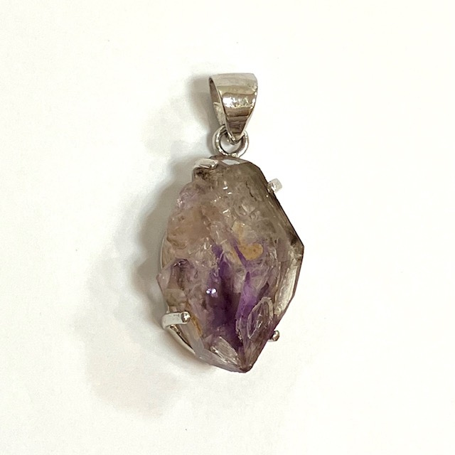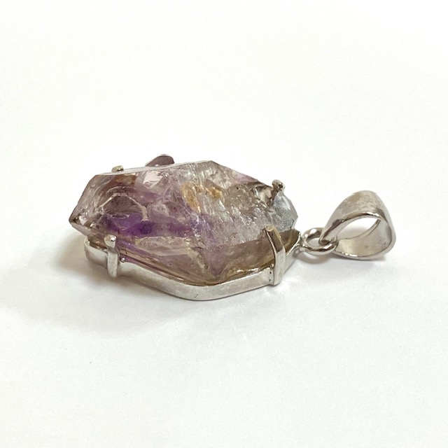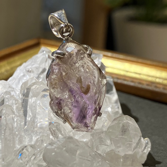 アメジスト(紫水晶)エレスチャルのナチュラルな原石をSILVER925の台座にはめ込んだ、1点もののペンダントトップです。