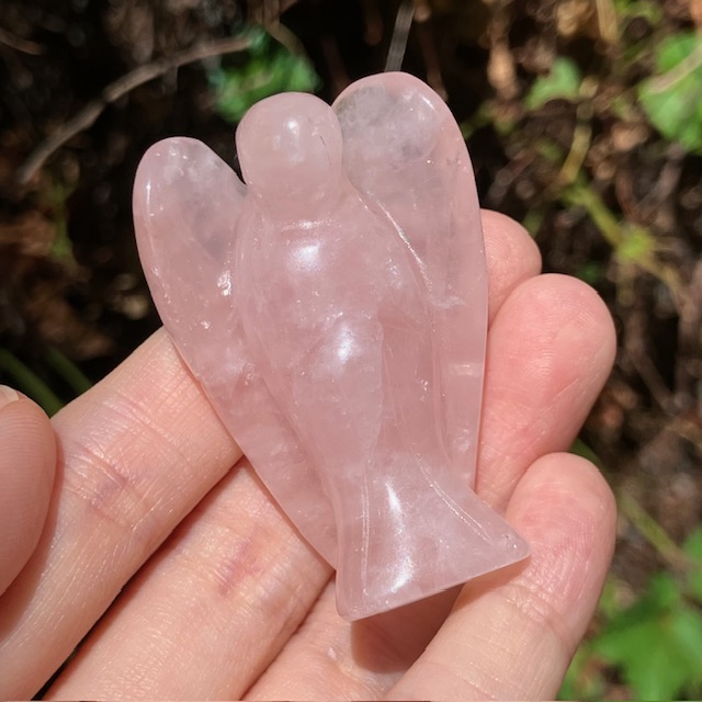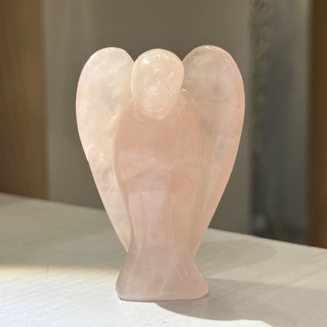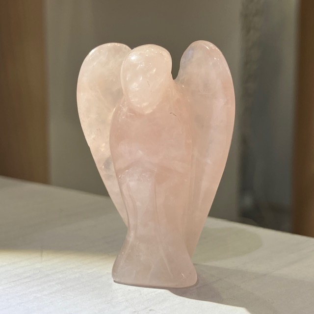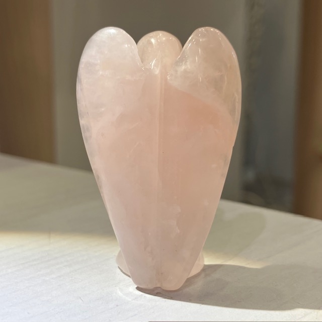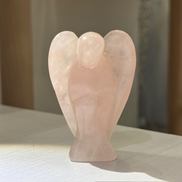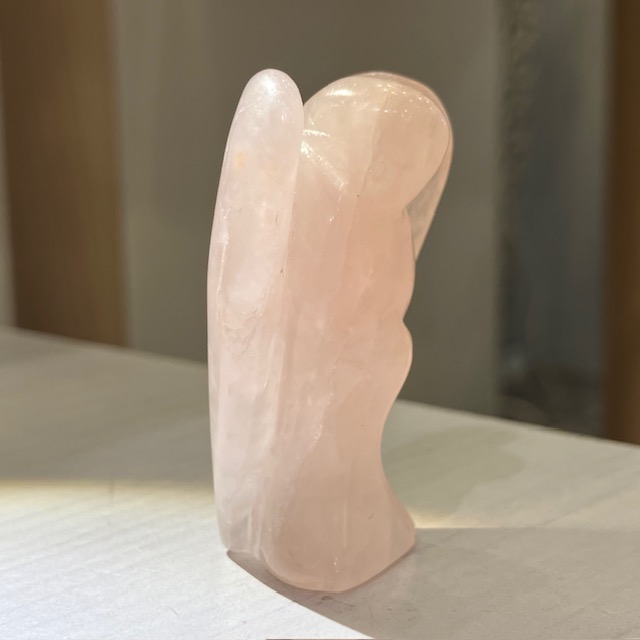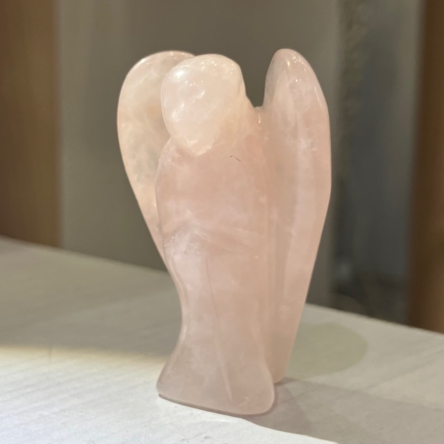 手のひらサイズでお気に入りの空間に置きやすい、ローズクォーツのエンジェル原石です。