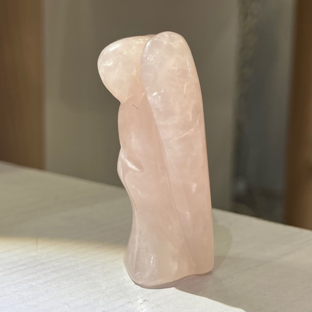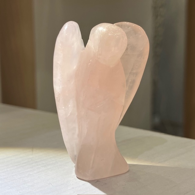 手のひらサイズでお気に入りの空間に置きやすい、ローズクォーツのエンジェル原石です。
