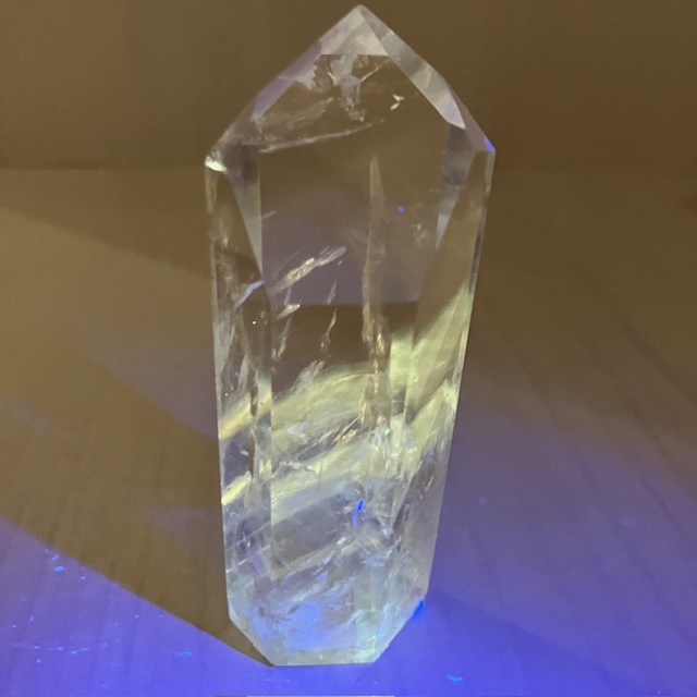謎に包まれた発光するファントム、パウエライトファントムアメジストのポイント原石です。
