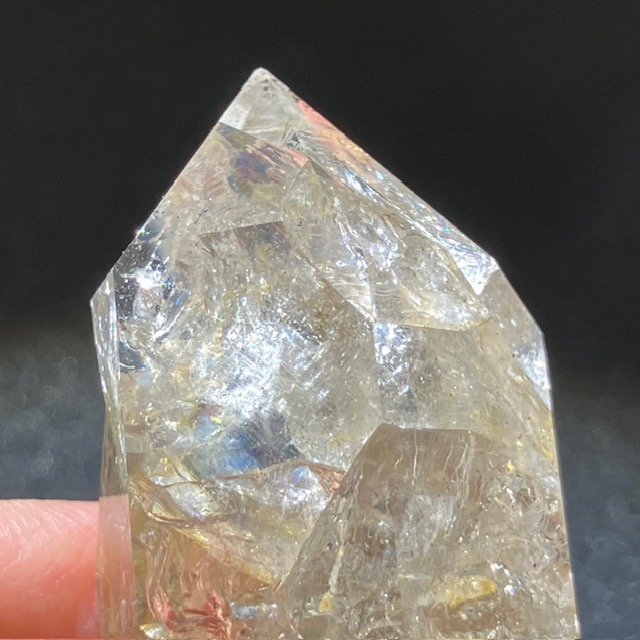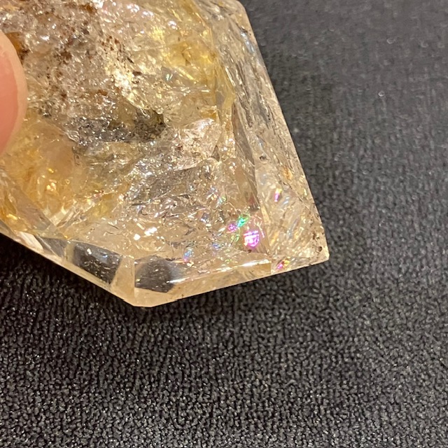 内部にはキラキラと輝く“レインボー”や、両側の先端が尖った“ダブルポイント”の形状が見られます。