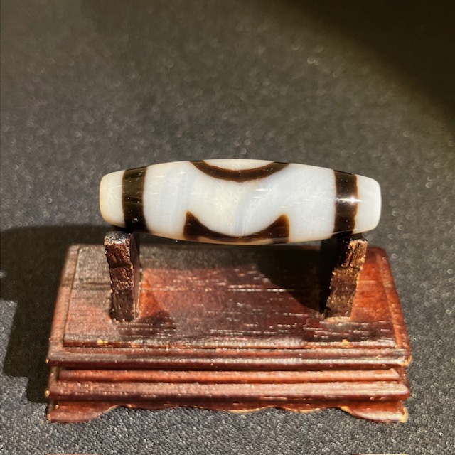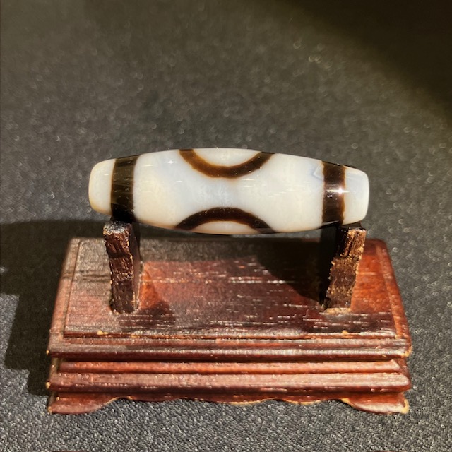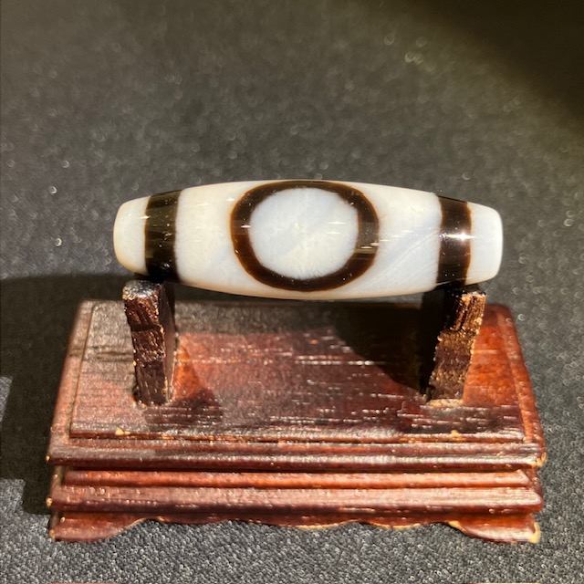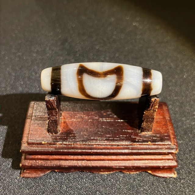今回入荷したこちらの天珠は白地の部分にメノウ本来の流線模様が見られ、天然石としての魅力も兼ね備えた個性的な一石です。