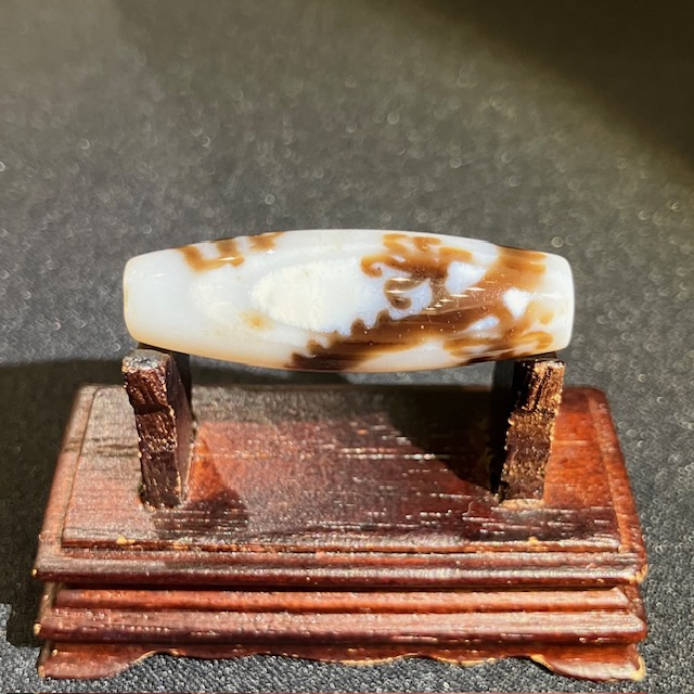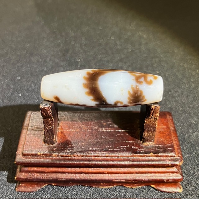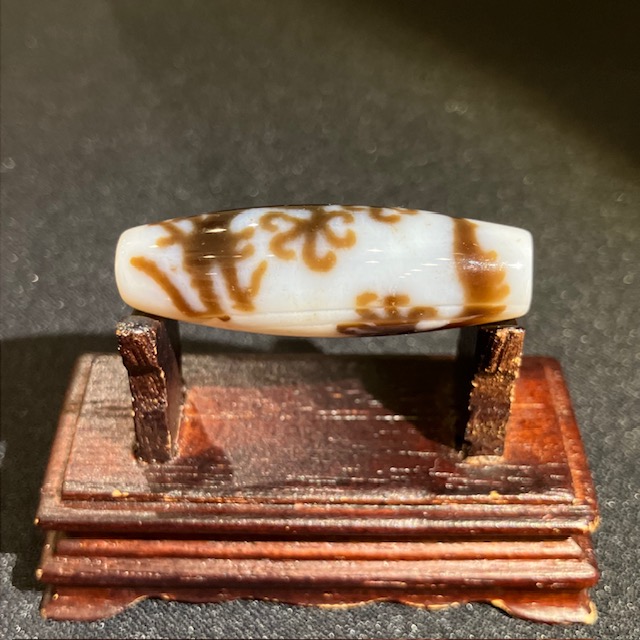 今回入荷したこちらの天珠は、白地の部分にメノウ本来の流線模様が見られ、天然石としての魅力も兼ね備えています。