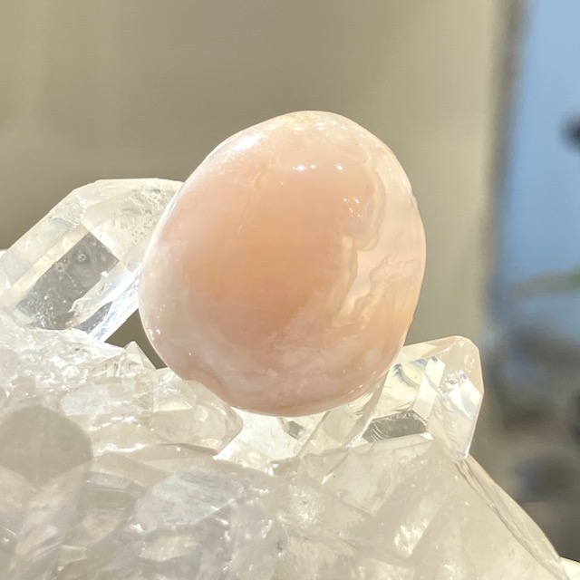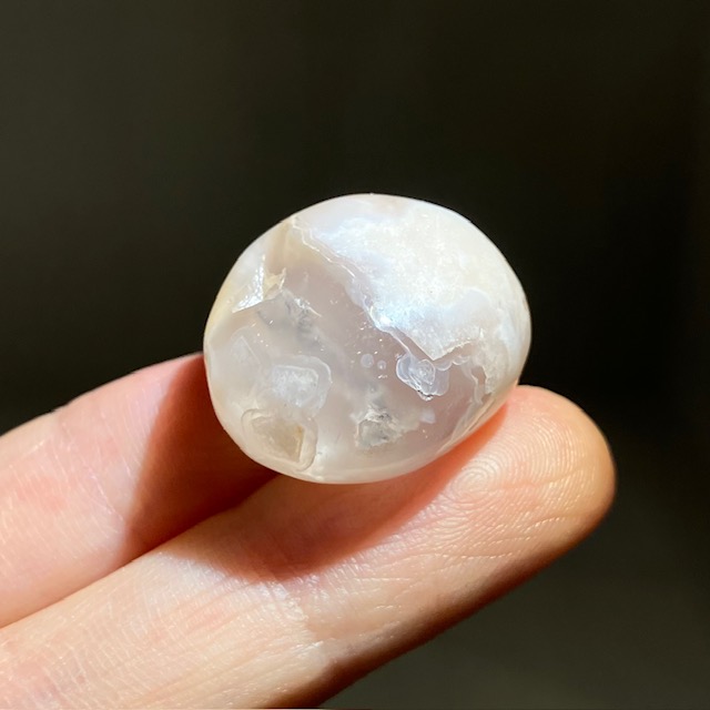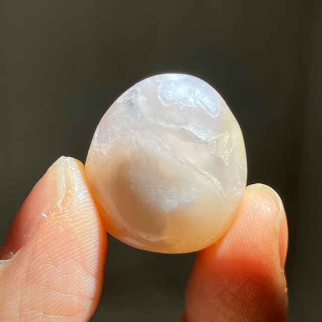 やや透明感があるストーン内部には、アゲートが沈殿して固まっていく際にできる桜が舞い落ちたような美しい内包物があり、幻想的でかわいらしい一石です。